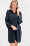 Great versatile dress to take from the office to date night and more! Solid black with shirt collar neckline and front pocket.