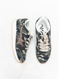 Comfy and cute...no better combo!! Camo with tan laces & gold sequin star detail!