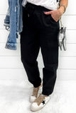 Be on trend with these super cute carpenter style joggers in black! Add some heels and accessories for date night, or sneakers and graphic tee for the weekend! Comfortable elastic waist. 100% Cotton