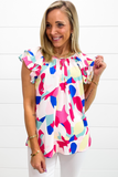 Everything is better when it's brighter! In LOVE with this cute multi color print top with ruffle sleeve!