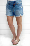 Summer has arrived, and so have all NEW shorts!! Super cute light wash with frayed hem, light distressing & cross over fly. 3" inseam