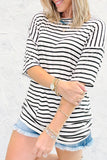 Great layering piece or alone. Staple black and white stripes short sleeve top!