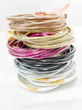 Add accessories to your outfit without the noise :) NEW jelly bangle sets! Includes 5 bangles in each set. Glitter and sequin filled.