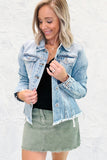 Every closet needs a staple denim jacket.  All About It Denim Jacket medium wash denim jacket perfect from a casual day to dressy date night, or over dresses this fall! Crop cutout with distressing!
