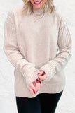 Styling basic core pieces for to carry through many looks! Mock neck raised hem loose fit knit top!